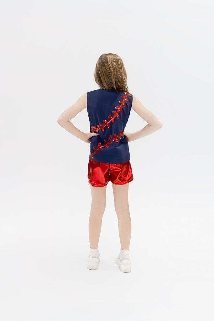 Strike a pose in this playful baseball tank that brings the fun to game day! Featuring bold red sequins that catch the light with every move, this navy and red design is perfect for fans who want to shine in the stands or show their team spirit with serious style. Whether you're cheering from the bleachers or heading out after the game, this tank delivers comfort and eye-catching flair that'll make you the MVP of any crowd.