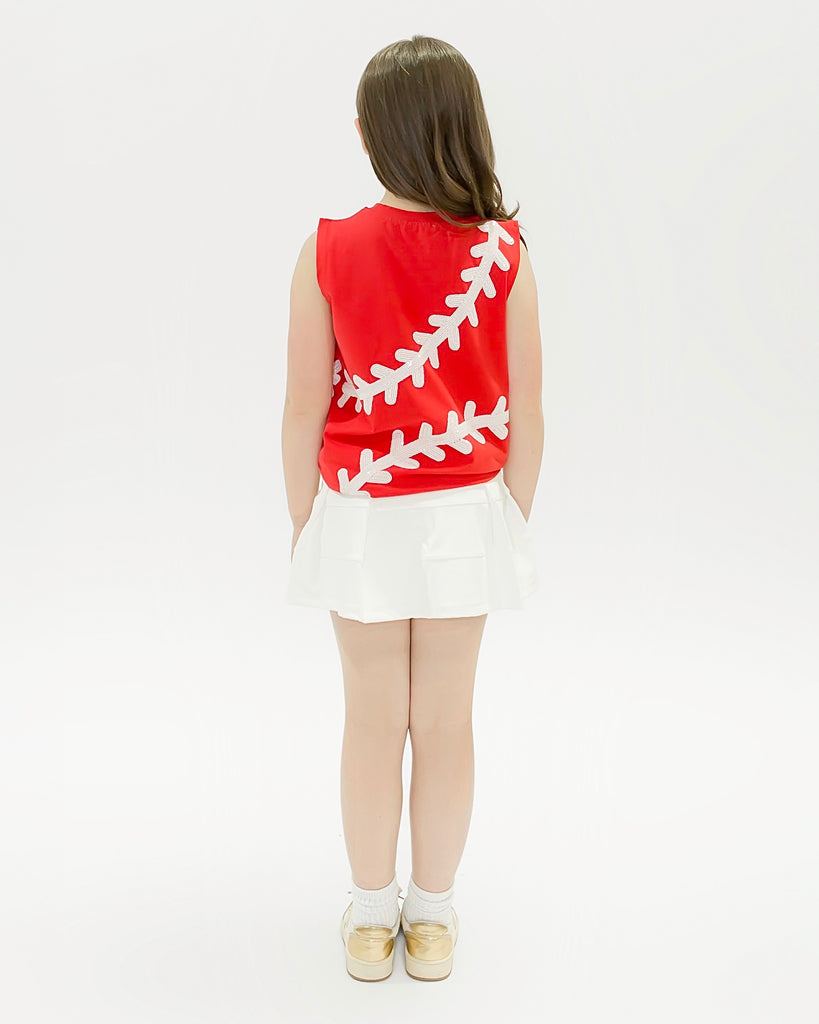 Let your little slugger shine on game day in this vibrant red baseball tank! Featuring eye-catching sequins that catch the light with every swing and cheer, it's the perfect blend of sporty style and sparkle. Comfortable enough for active play, this tank keeps kids looking game-ready while adding that extra dash of pizzazz to their baseball adventures.