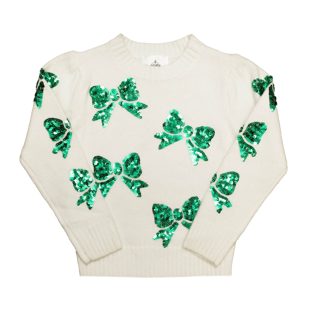 Adorable cream sweater featuring charming green bow details that add a touch of whimsy to your wardrobe. Perfect for layering or wearing solo, this cozy piece brings a playful preppy vibe to any outfit. The soft, comfortable fabric makes it ideal for casual days or dressed-up occasions. A delightful way to express your fun, fashion-forward style.