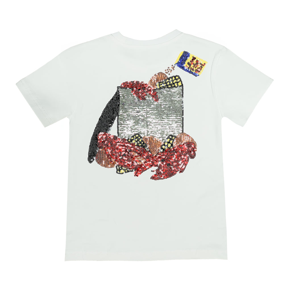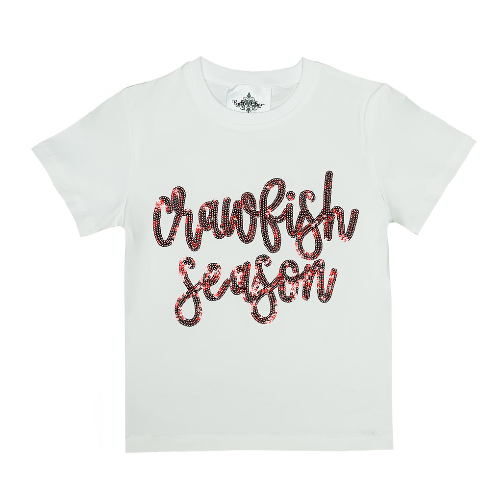 Celebrate crawfish season in style with this adorable sequin-embellished white shirt! Perfect for your little one, this playful piece features shimmering sequins that catch the light with every twirl and movement. The classic white base keeps it versatile enough to pair with anything in their wardrobe, while the festive sequin details add just the right amount of sparkle and fun. Ideal for seasonal celebrations, family gatherings, or whenever they want to shine bright. A must-have for crawfish boil season!