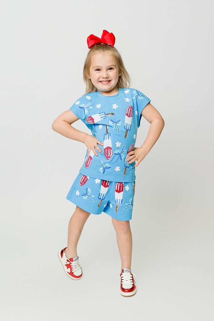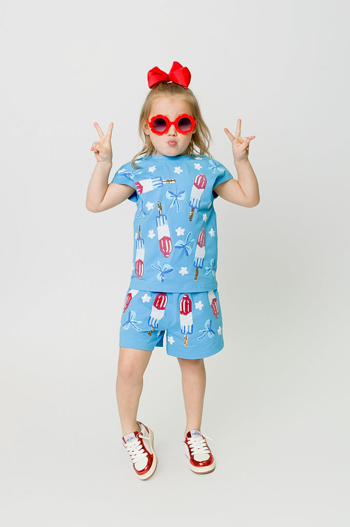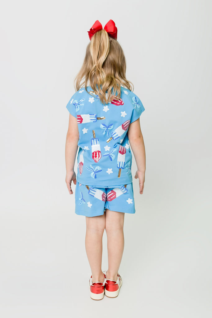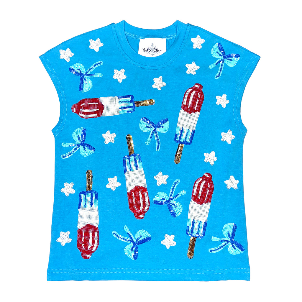 Brighten up your little one's summer wardrobe with this festive Popsicle Top, perfect for Memorial Day and Fourth of July celebrations. Featuring eye-catching sequin details that sparkle in the sunshine, this playful piece brings joy and patriotic spirit to warm-weather adventures. Comfortable and fun, it's an ideal choice for parades, picnics, and outdoor gatherings. Watch your child shine this season!