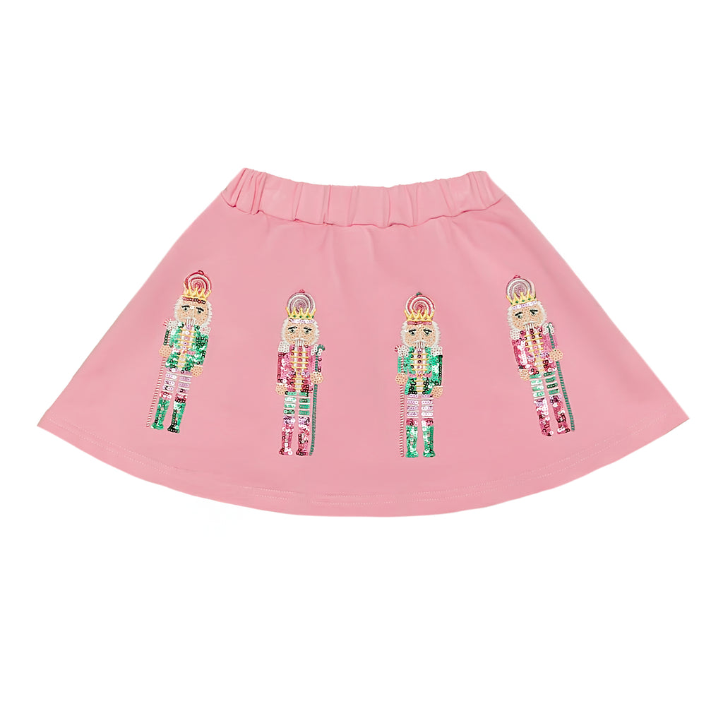 Add a sparkly touch of holiday cheer to any outfit with this Pink and Teal Nutcracker Skort. Featuring sequin nutcrackers and built-in shorts, it’s perfect for twirling through festive parties and spreading joyful vibes all season long. Comfortable and stylish, this skort brings holiday magic with every step.
